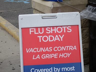 And flu shots for all. Flu shots, get your flu shots! Get your vacunas contra la gripe hoy! Covered by most insurance plans, just not yours!