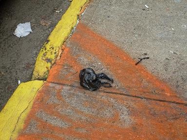 And I don’t think this is what you are supposed to do with it once you have it bagged. Dropping the bag in the street sort of defeats the purpose of picking it up in the first place. Although, the owner humiliation factor must be pretty high. Mmmmm. Smell that aroma. I said smell it!