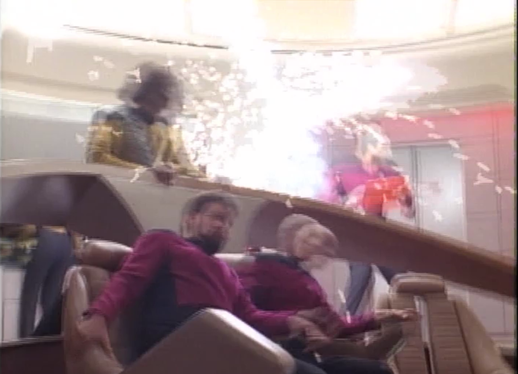 What is with Geordi’s visor? It looks like a hairclip, or two angry combs. How does he see better than other people with a comb in front of his eyes? Anytime they have ever shown what he is supposed to be seeing, it looks like someone pressed green and purple play dough onto a television screen. The fact that he does not ‘accidentally’ hit on Captain Picard is actually really surprising.