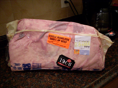 Instead, I will start with an 18 pound $115 beef roast. Various roast cuts go by all sorts of different names, and you can’t rely on them being labeled properly, so you have to look for one that has the right shape and configuration to it. If there is someone at the meat store who speaks the same language as you do, you can ask them for assistance. At the stores I go to, there never is, and I don’t speak whatever language it is that they are speaking.
