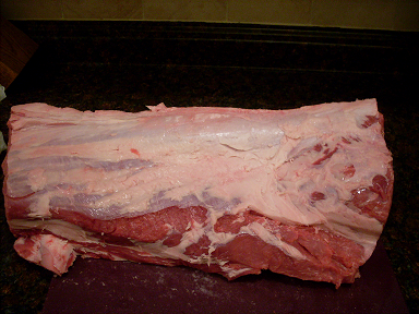 In the lower left corner, you can see the end of the rib bone after the fatty parts were removed.