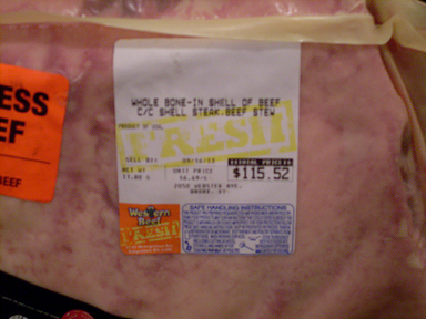 This side would be the outside of the cow. There is a thick layer of fat on it, but at least they removed the leather for me. The muscle in this part of the cow does not get much of a workout, so it is typically quite tender.